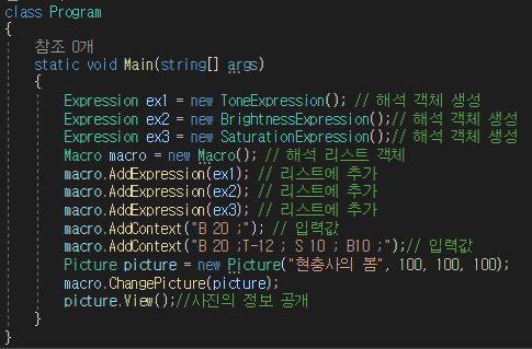 -ToneExpression,BrightnessExpression,SaturationExpression는 입력값을 받아 해석하는 기능과 사진을 정보를 수정시키는 매서드를 재정의 한다.