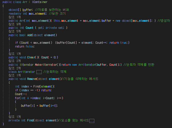 -Arr클래스는 IContainer를 받아 기능을 실질적 구현한다.
