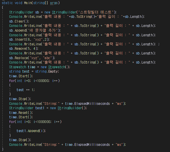 C#은 string괴 비슷한 StringBulider클래스를 제공하는데