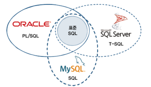 -오라클,MySQL,SQL-Server 등의 DBMS들은 표준 SQL에서 추가로 기능을 더해진 형태.
