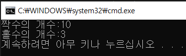 홀수 와 짝수의 개수를 메서드를 합쳐보자.