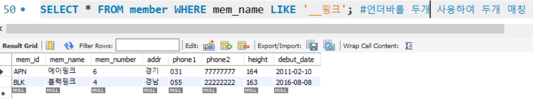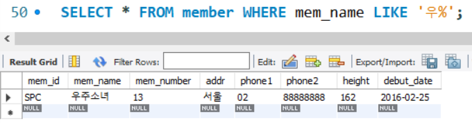 -'문자열'+'%'의 '%'는 문자열 뒤에 어떤 단어이든 허용한다는 표현.