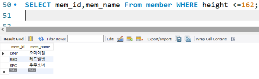 -WHERE은 조회할 데이터 중 조건에 맞는 데이터를 찾는 구문.