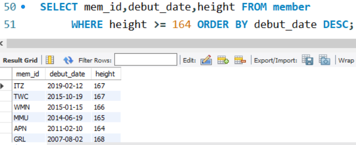 -ORDER BY 열_이름 뒤에 DESC를 붙이면 내림차순으로 변경 가능.