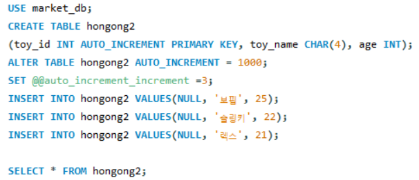-증가하는 값을 지정하고 싶다면 ;@@auto_increment_increment = 숫자;' 식으로 추가해준다