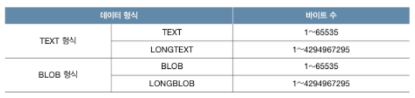 -그래서 더 큰 형식을 사용할 경우 TEXT와 BLOB형식을 사용한다.