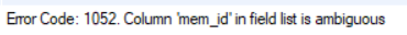-Select 앞 mem_id는 두 테이블의 공통된 항목으로 어느 테이블의 것인지 모호하기 떄문이다.