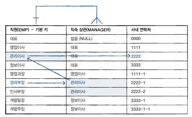 직원 중 경리부장의 직속 상관인 관리이사인 데이터를 생성하게 된다.