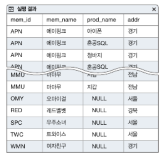 -한쪽 테이블의 항목을 기준으로 데이터를 생성하는 조인.
