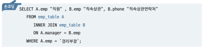 -자기 자신의 테이블을 조인하여 데이터를 생성하는 방식으로 기존의 조인 방식과 같다.