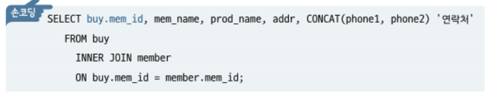 - 두 테이블의 공통된 항목을 기준으로 데이터를 생성하는 조인