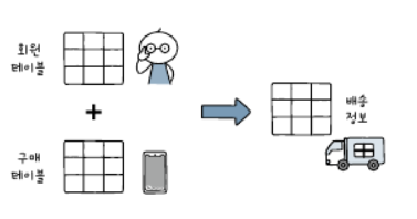 ex)회원 테이블과 구매테이블을 묶어 베송정보 데이터를 만듬.