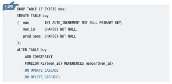 ON UPDATE CASCADE와 DELETE CASCADE 구문이 있다.