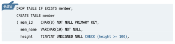 -빈 값을 허용하고 싶을 땐 NULL 아니면 생략하면 되고 허용하지 않을 떈 NOT NULL를 추가하면 된다.