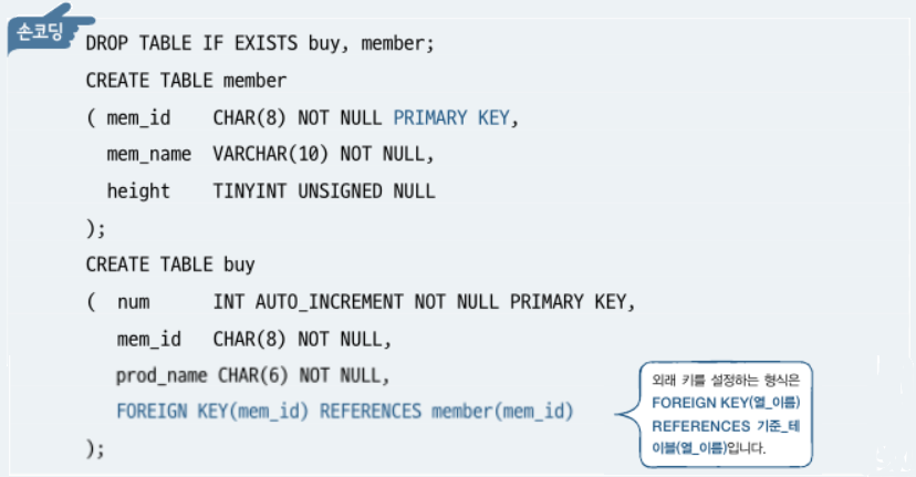 키본키가 있는 테이블을 기준테이블 외래키가 있는 테이블을 참조 테이블이라고 한다.