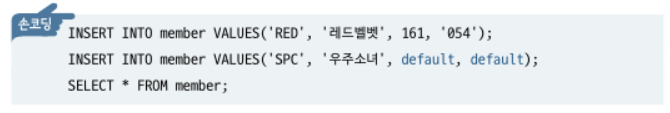 -DEFALUT로 지정된 값으로 추가하고 싶을땐 default를 넣어주면 된다.