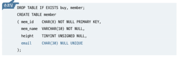 1)정의 : 중복되지 않는 유일한 값을 입력 해야하는 조건.