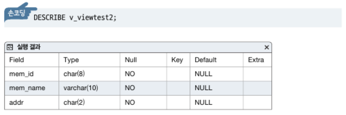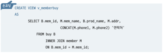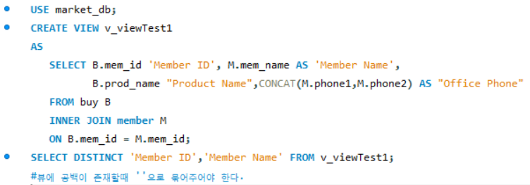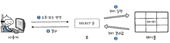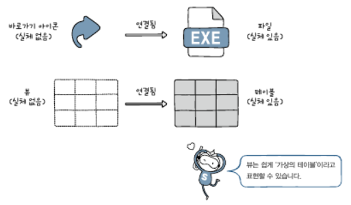 -뷰는 실제로 물리적인 데이터를 가지지 않고 SQL문(그 중에서 SELECT문)의 결과로서 나타낸다.