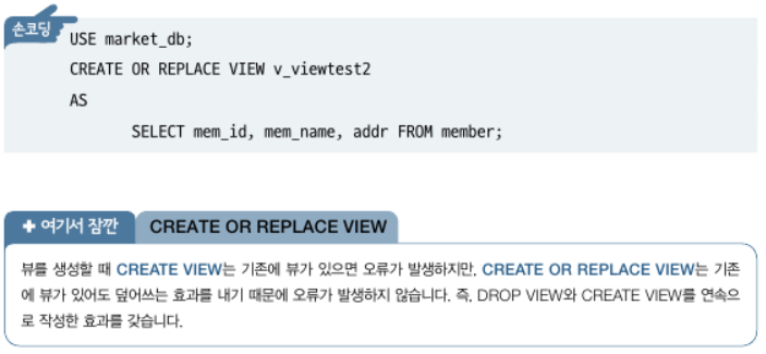 -CREATE OR REPLACE VIEW 는 기존의 뷰를 덮어쓰기를 한다.