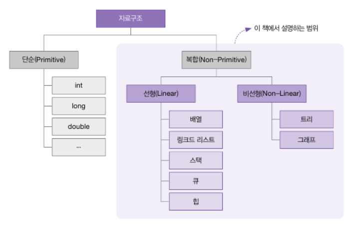 -단순 자료구조를 기반으로 만들어낸 배열, 스택, 트리 등과같은 자료구조.