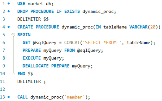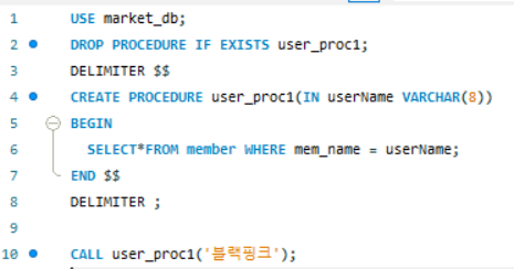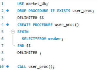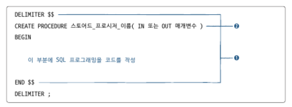 1)정의: Mysql에서 제공하는 프로그래밍 기능, 쿼리 문의 집합으로 어떤 동작을 일괄적으로