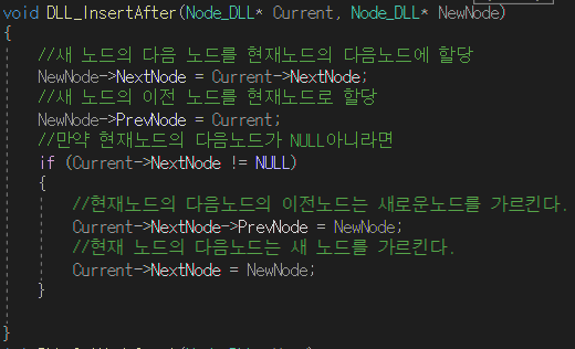 -특정 구간의 노드를 삽입할 때 삽입할 노드의 이전노드와 다음노드를 연결한다.
