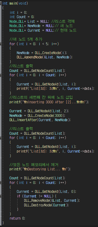 2.더블 링크드의 연산 및 함수원형 선언