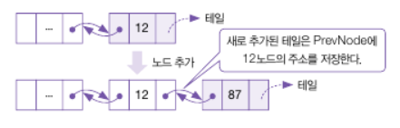 -링크드 리스트에서 앞에 해당 노드를 가리크는 포인터를 추가적으로 갖고 있는 구조.
