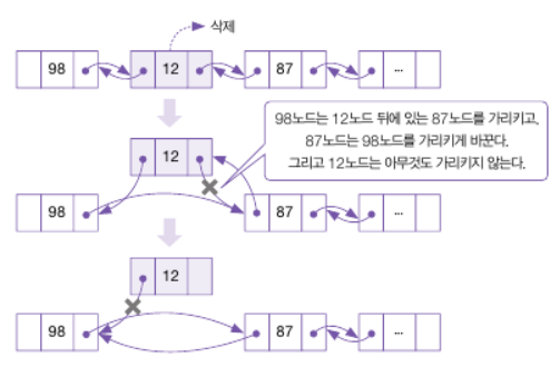 -링크드 리스트와 다르게 앞 뒤 노드를 연결하는 연산이 추가적으로 필요하다.