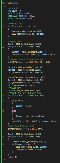 2.환형 링크드 리스트의 연산 및 함수원형 선언