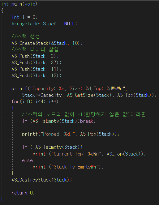 3.배열 기반 스택의 연산 및 함수원형 선언