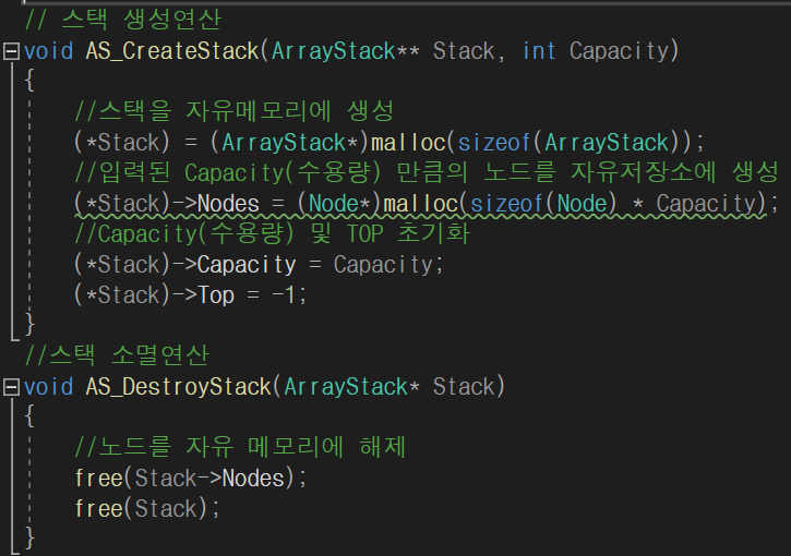 -스택 구조체는 용량,최상위 노드의 위치,노드배열 이 세가지를 가지고 있어야 한다.