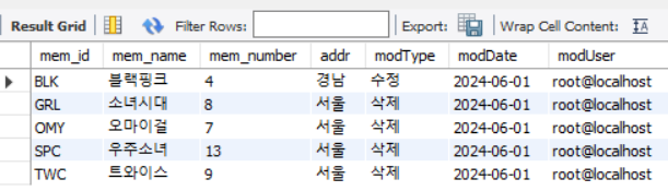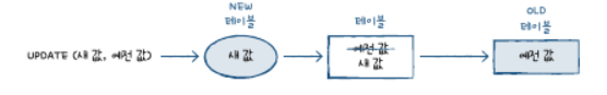 -NEW,OLD 문은 INSERT,UPDATE,DELETE 작업이 수행되면 임시로 사용되는 MYSQL의 테이블 시스템