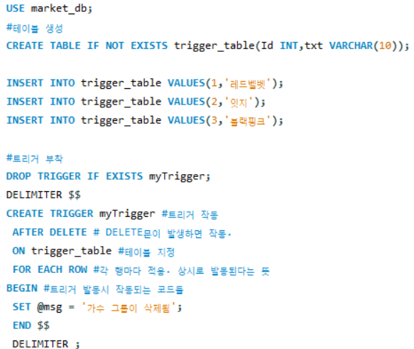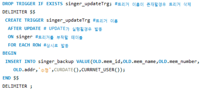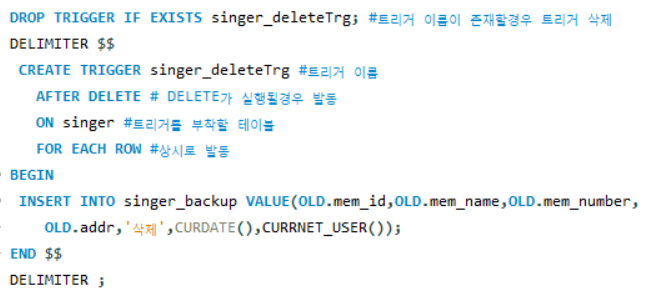 -SQL문이 실행될때 자동으로 실행되는 프로그래밍 기능.