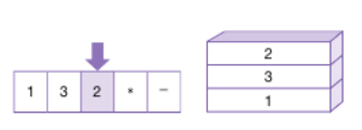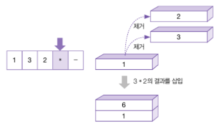 -아래의 그림은 왼쪽부터 순서대로 1,3,2의 피연산자를 스택에 삽입됨