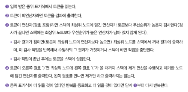 -컴퓨터가 후위표기식을 사용하는 것이 더 좋을지 모르지만 사람에게는 중위표기식이 더 익숙하고 편하다.