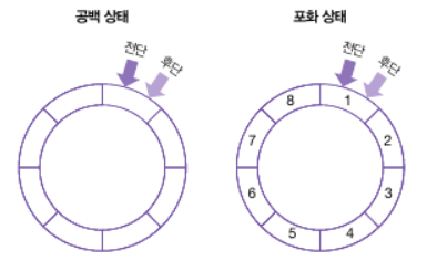 -아래의 그림을 보면 공백상태와 포화상태일 때 전단과 후단이 같다.
