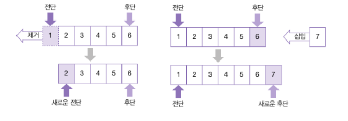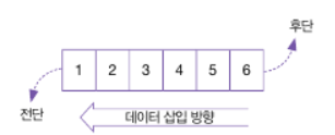 -큐의 가장 앞 요소를 전단(front) 가장 마지막 요소를 후단(Rear)이라고 한다.