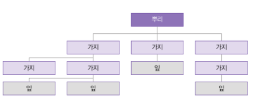 -트리의 가장 최상단 노드를 뿌리라고 그외 하며 가지나 잎이라고 한다.