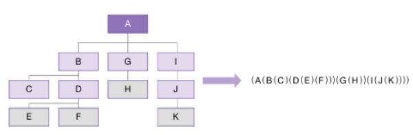 이 연결 그대로 자식 노드를 가리키도록 하는 표현법