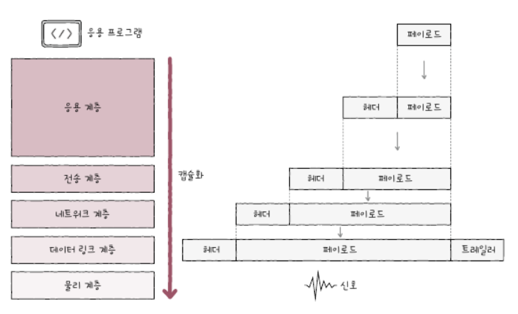 -계층에 맞는 헤더 및 트레일러를 추가해가는 과정을 캡슐화라고 한다.