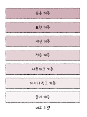 -국제 표준화 기구에서 만든 네트워크 참조 모델로 통신 단계를 총 7계층으로 나눈다.