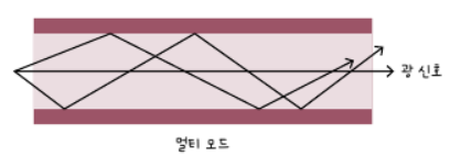 -멀티 모드케이블은 지름이 크기에 신호손실이 크기에 장거리전송에 부적합하다. 파장이 짧은 단파장의 빛을 사용한다.