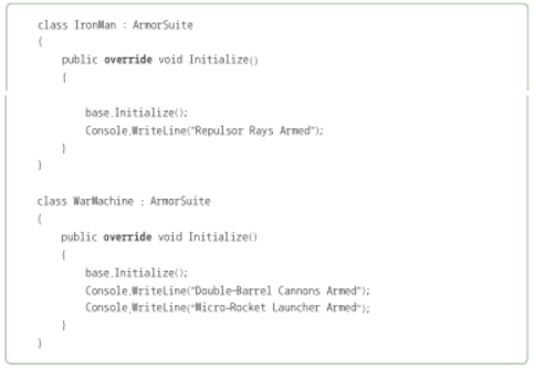 - 파생클래스에서는 virtual이 표시된 같은 이름의 메서드를 override를 붙여 재선언한다.