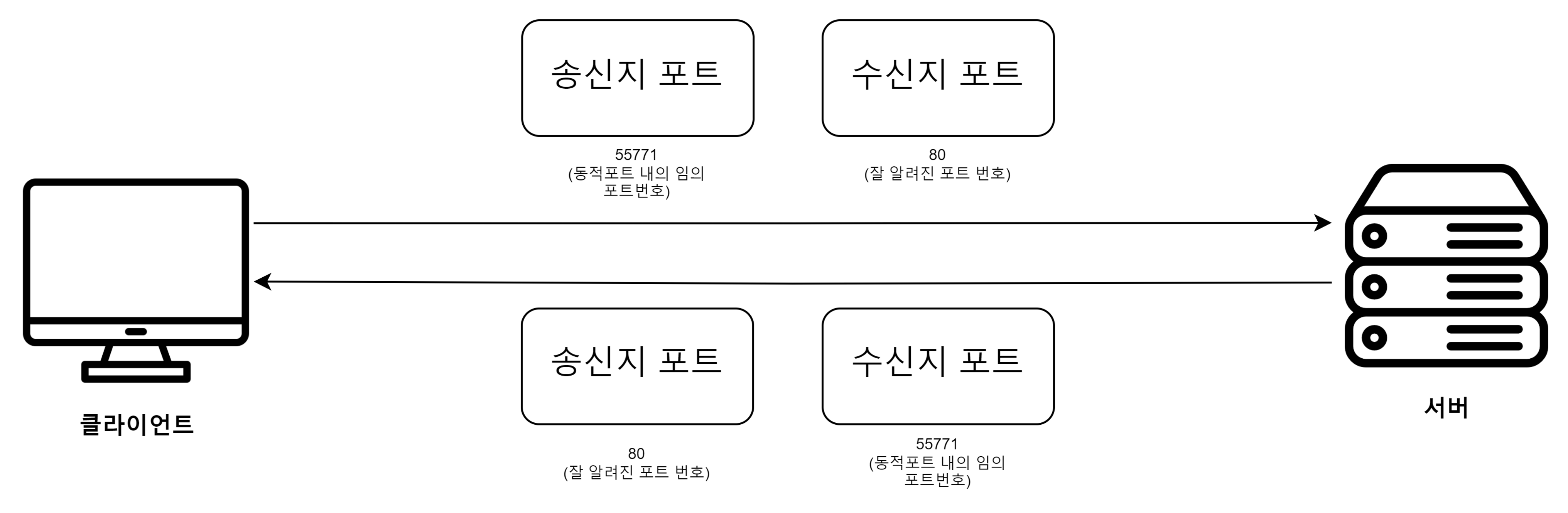 -포트는 16비트로 표현 가능하며, 사용가능한 포트 수는 2^16, 65536개입니다.