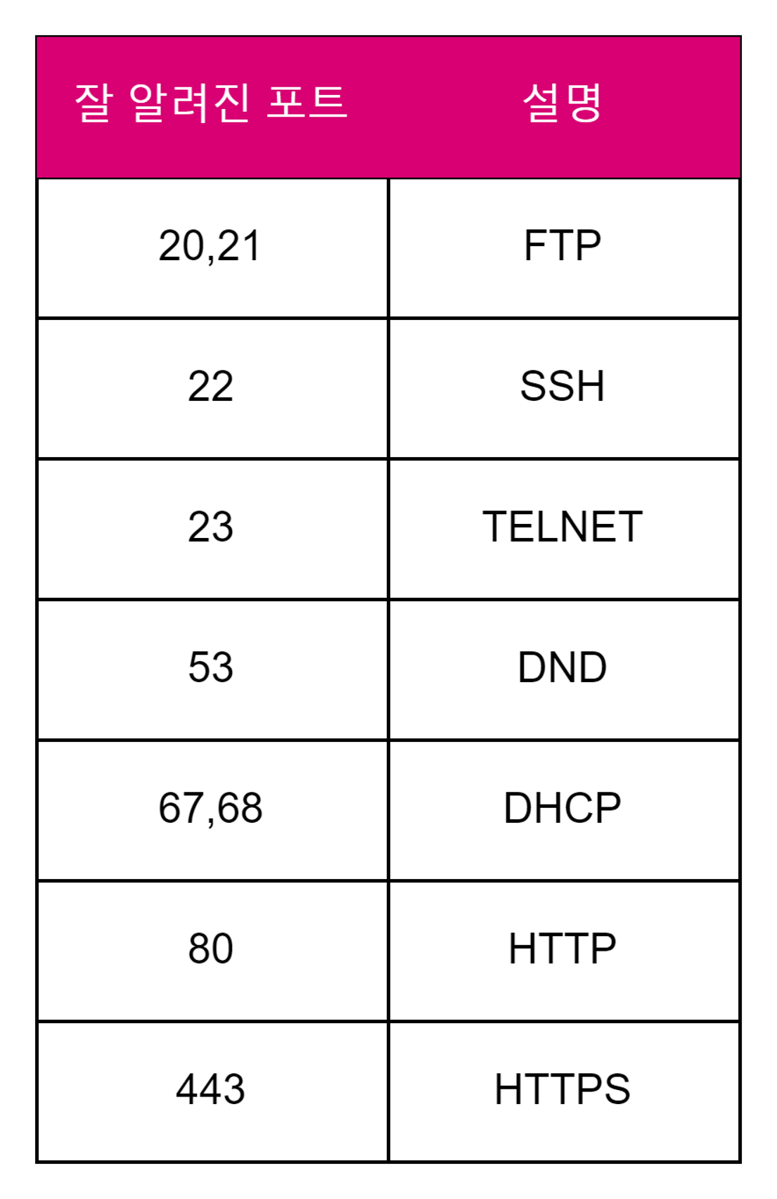 -0~1023번까지의 포트 번호는 잘 알려진 포트라고 하며 이름 그대로 범용적으로 사용되는