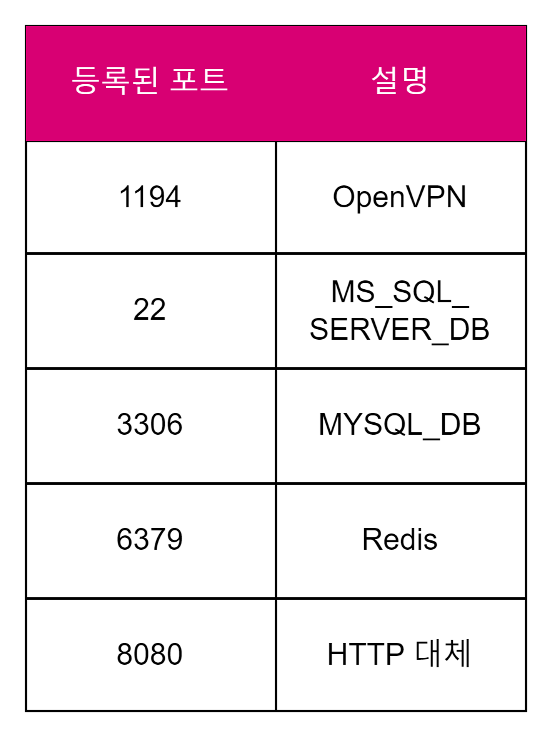 사용되는 애플리케이션 프로토콜이 없고 특별히 관리되지 않는 포트번호.