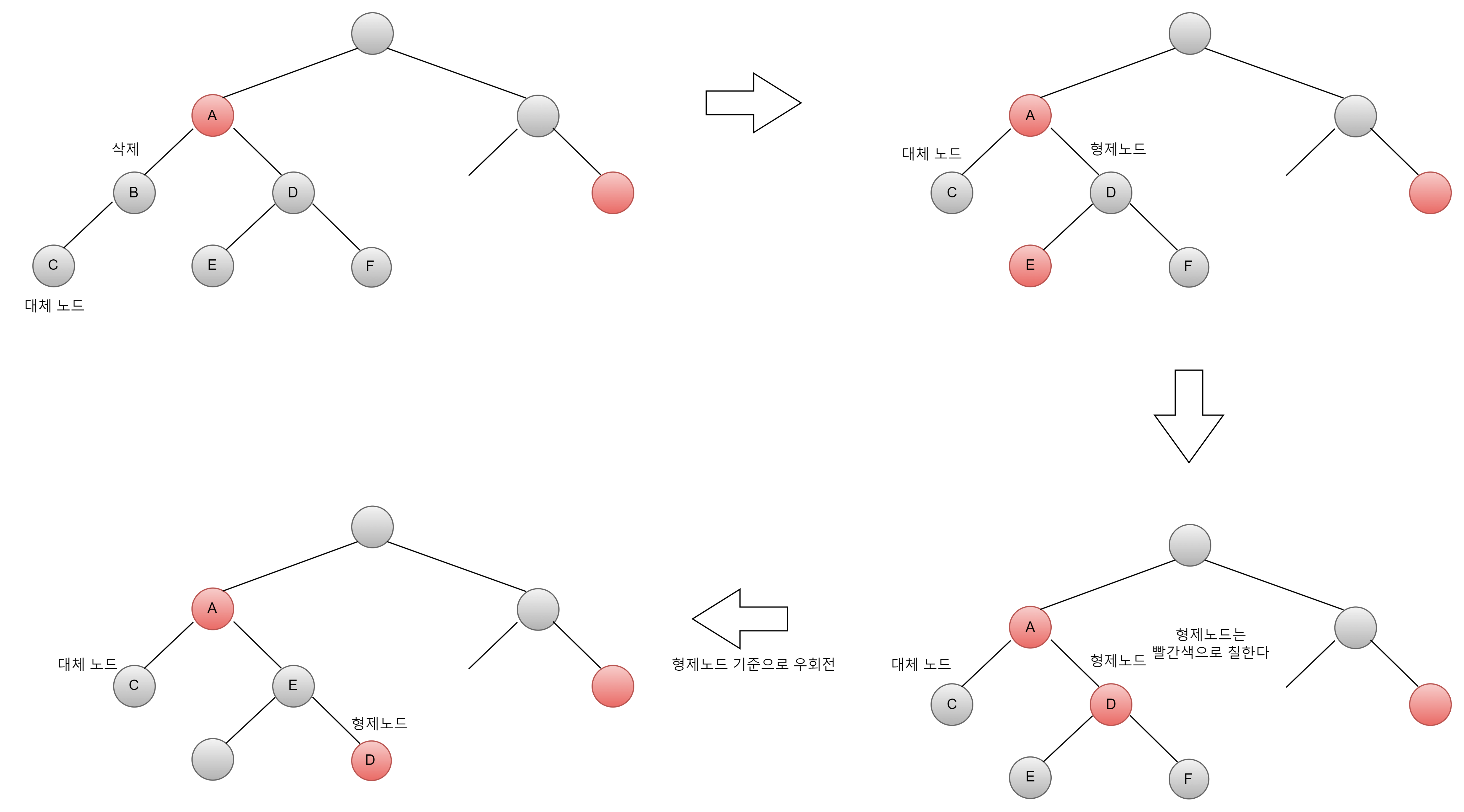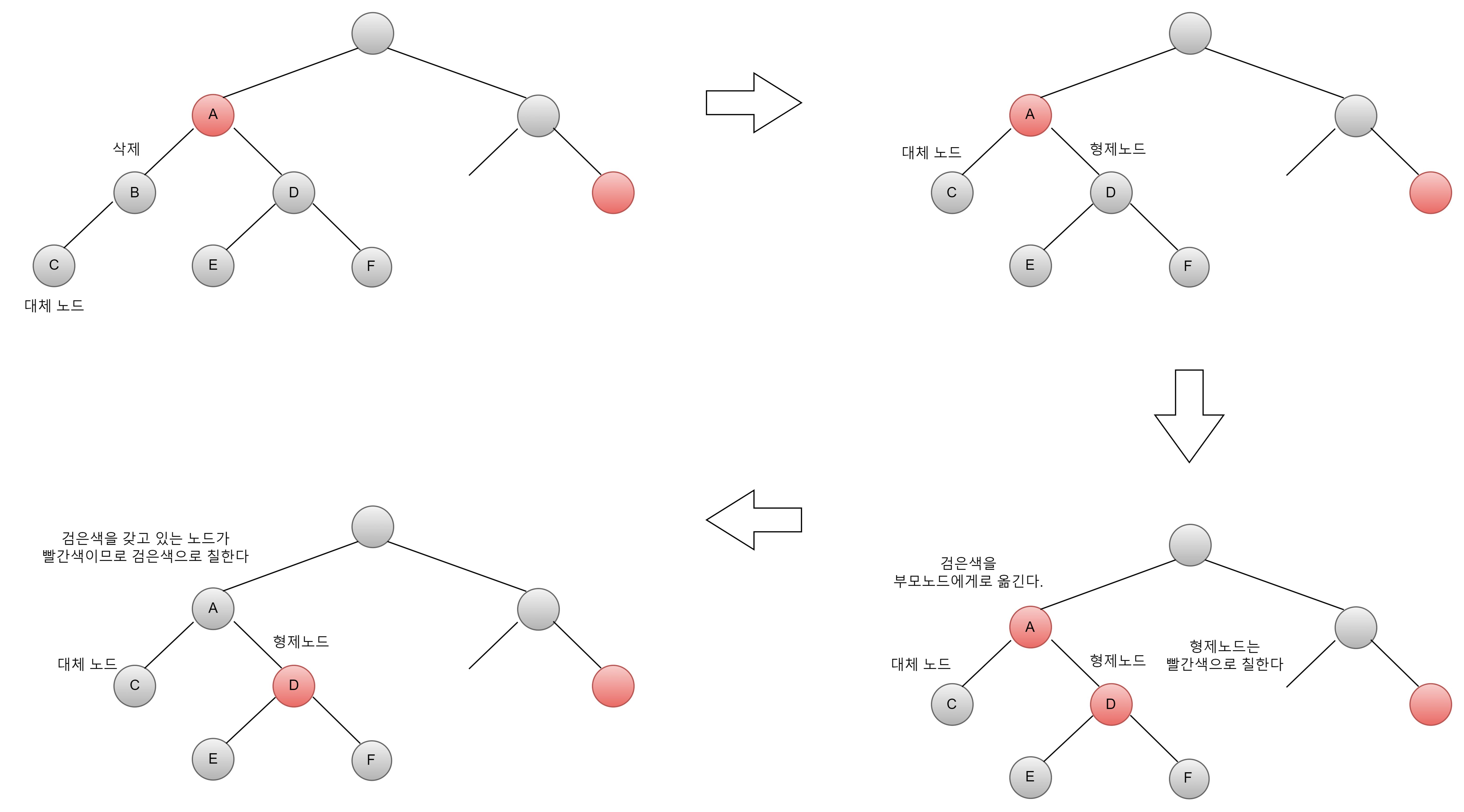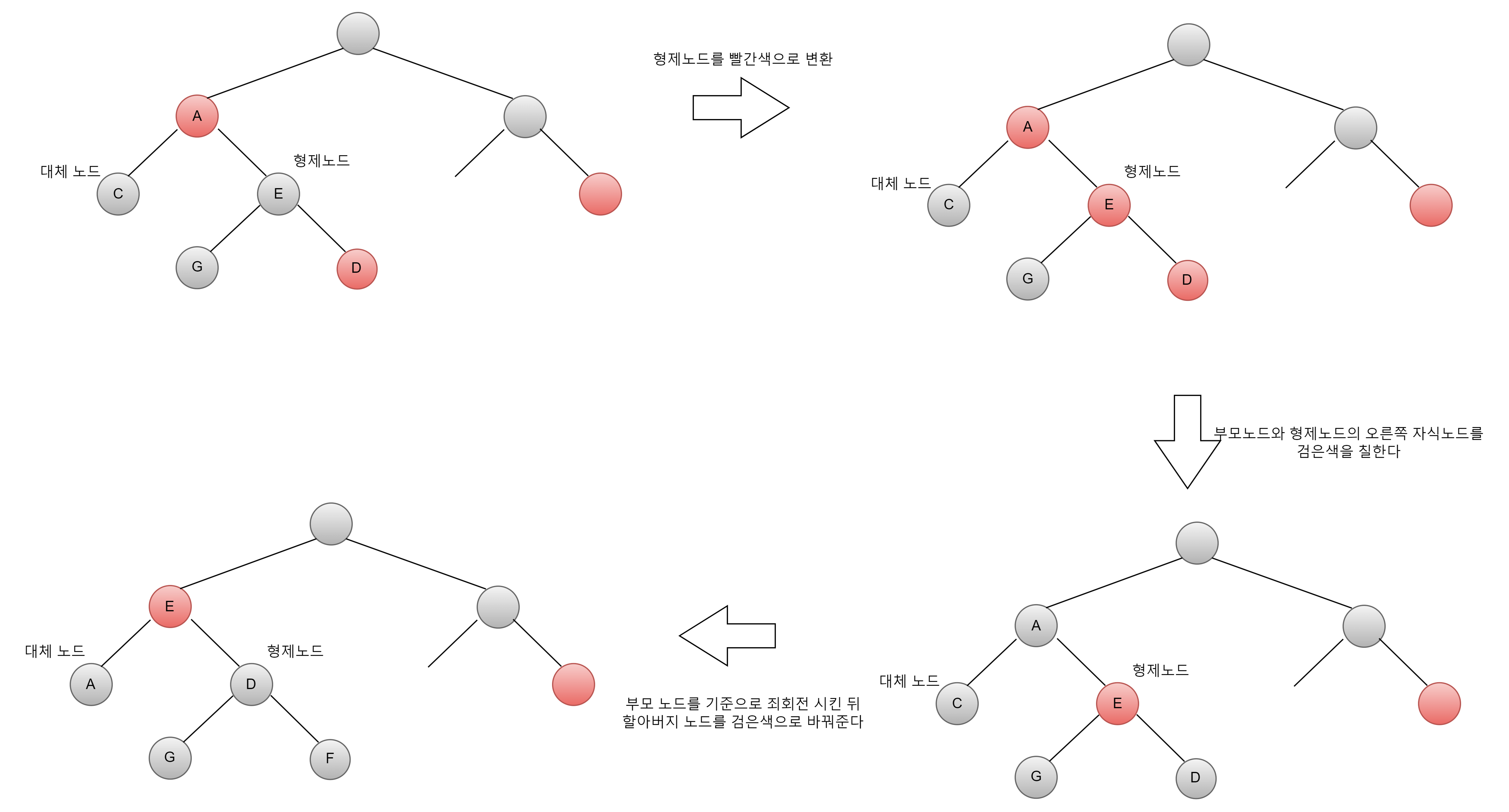 -형제노드를 빨간색을 변환 후 부모 노드와 형제노드의 오른쪽 자식 노드를 검은색으로 변경한 후