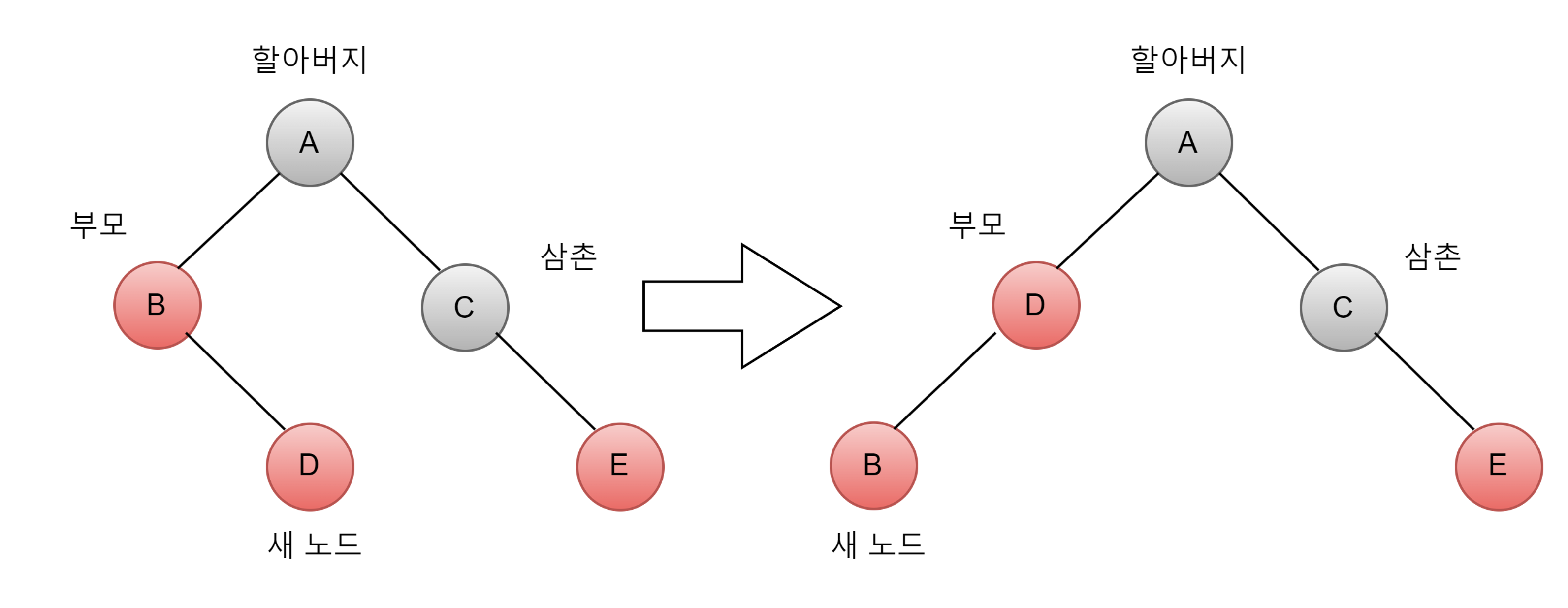 4)삼촌 노드가 검은색이며 새 노드가 부모 노드의 오른쪽 자식일 경우