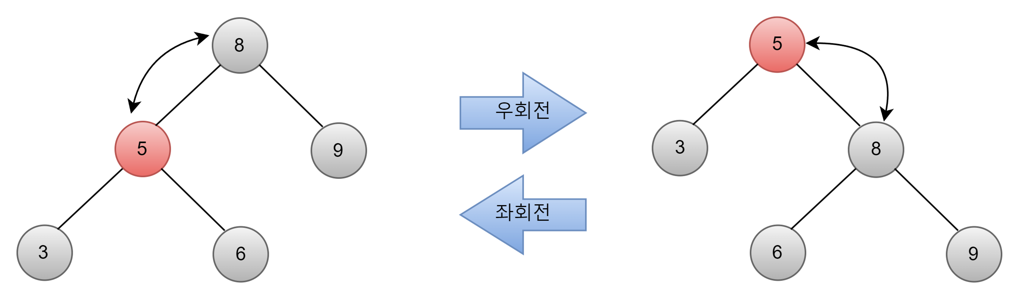 -회전은 오른쪽 자식과 부모의 위치를 바꾸는 좌 회전과 왼쪽 자식과 부모의 위치를 바꾸는